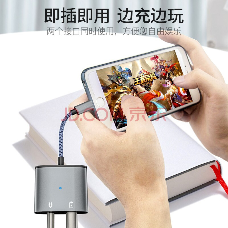 商品相册:JOWOYE苹果手机转接头iphone直播声卡转换器ipad吃鸡游戏语音通话U盾3.5mm耳机转接线小蜜蜂领夹麦克风第1张/共6
