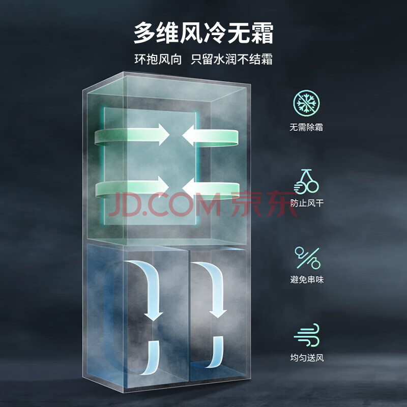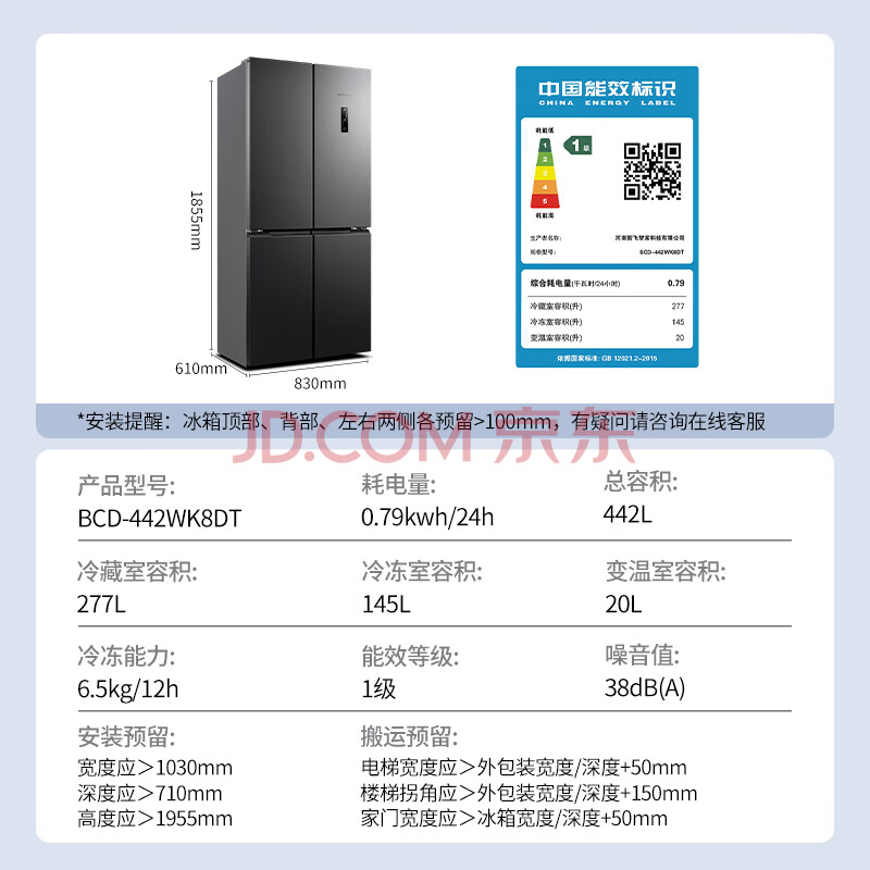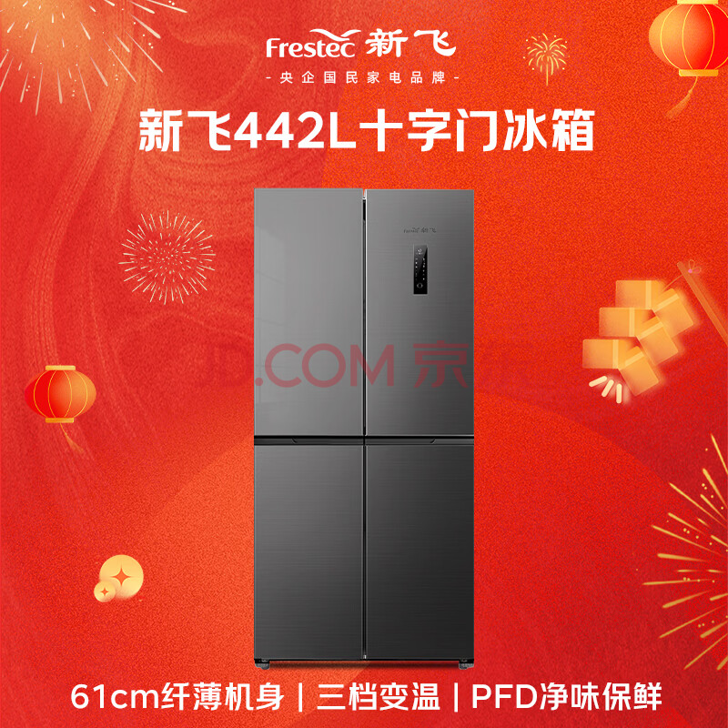商品相册:新飞442L十字门一级变频风冷无霜PFD主动净味电脑控温冰箱BCD-442WK8DT 第