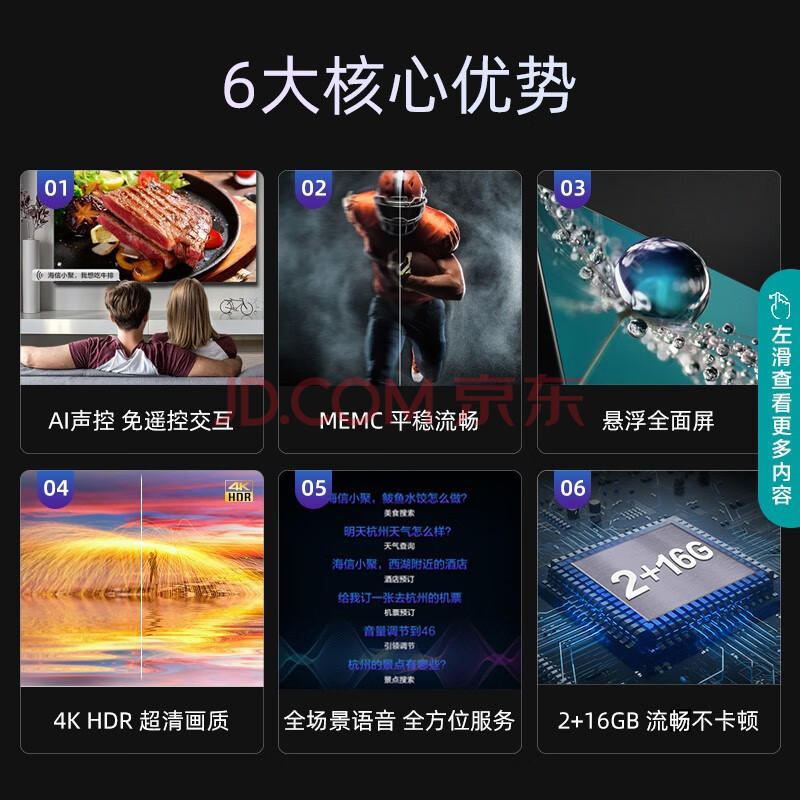 商品相册:海信(Hisense)电视 75E3F 75英寸 4K超薄巨幕全面屏 AI声控MEMC智慧屏第