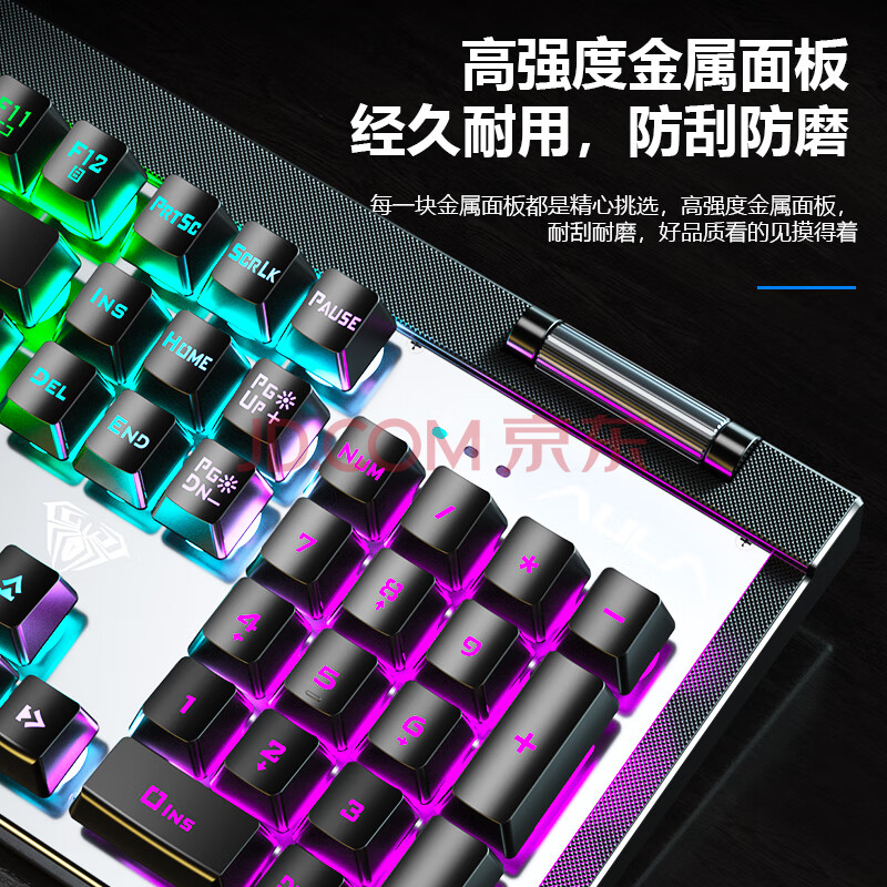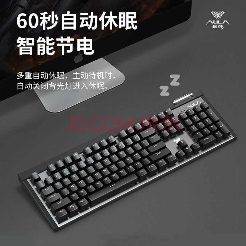 商品相册:狼蛛(AULA)T610无线键鼠套装 机械手感键盘鼠标 可充电 游戏背光键盘 笔记本电脑键盘 白色冰蓝光第