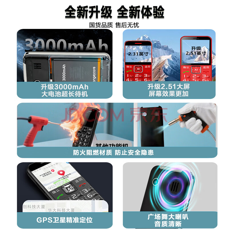商品相册:守护宝 老年人手机新款4G全网通gps定位老人老年专用手机超长待机大字大声老人机学生备用机K580s 珠光灰第
