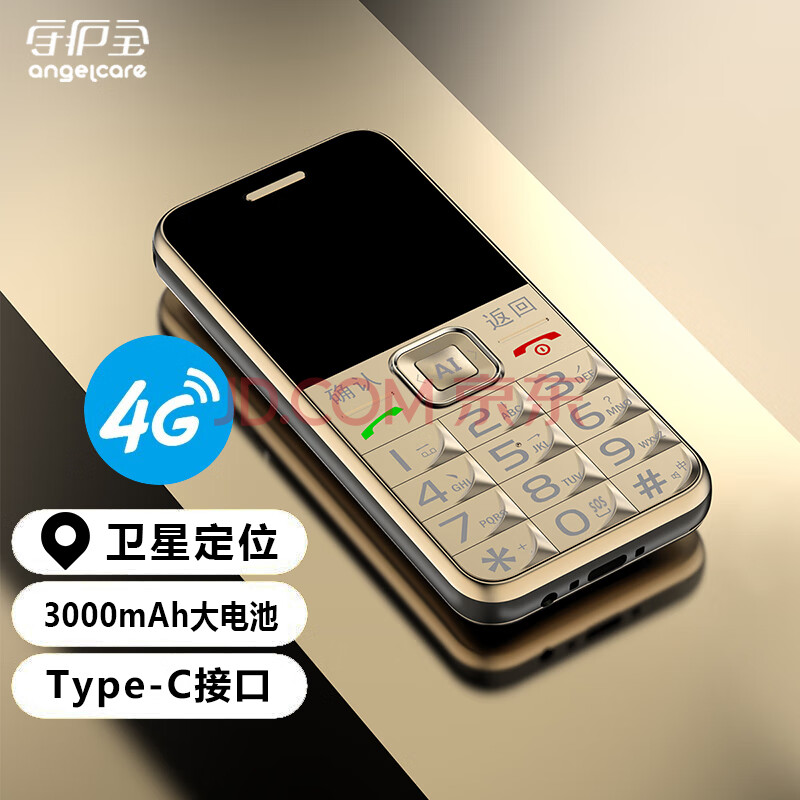 商品相册:守护宝 老年人手机新款4G全网通gps定位老人老年专用手机超长待机大字大声老人机学生备用机K580s 金色 第