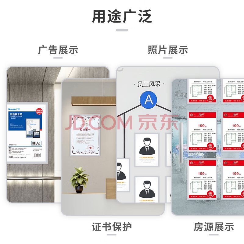 商品相册:广博(GuangBo)A3磁性展示贴 营业执照框透明文件保护套卡套 磁力贴公告栏通知贴纸 办公用品银色1张 S42019第