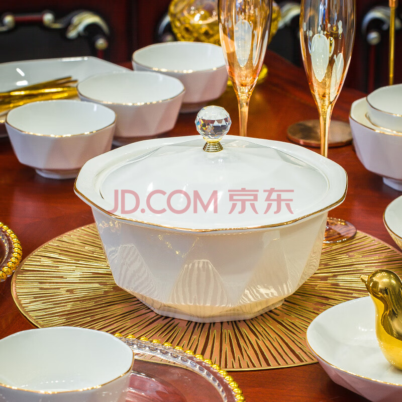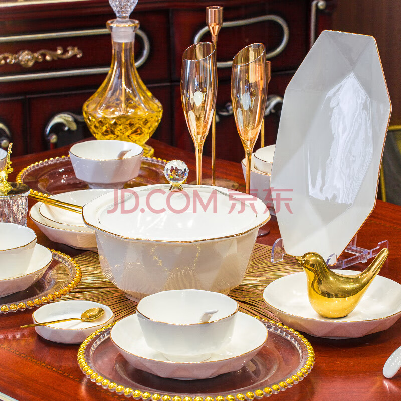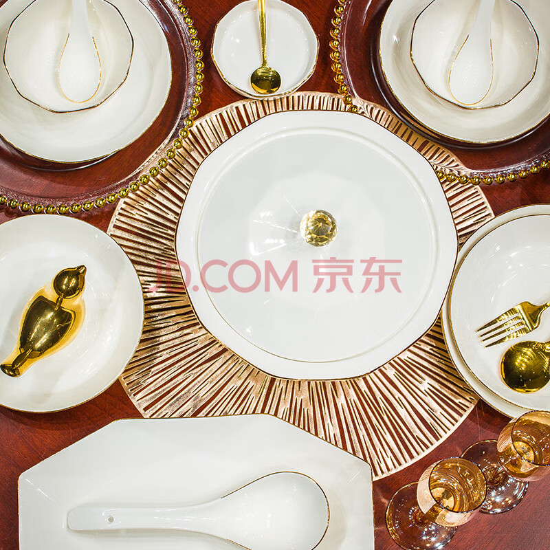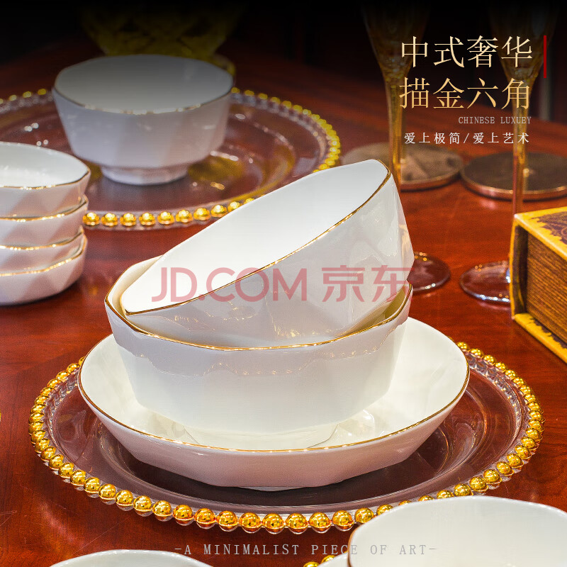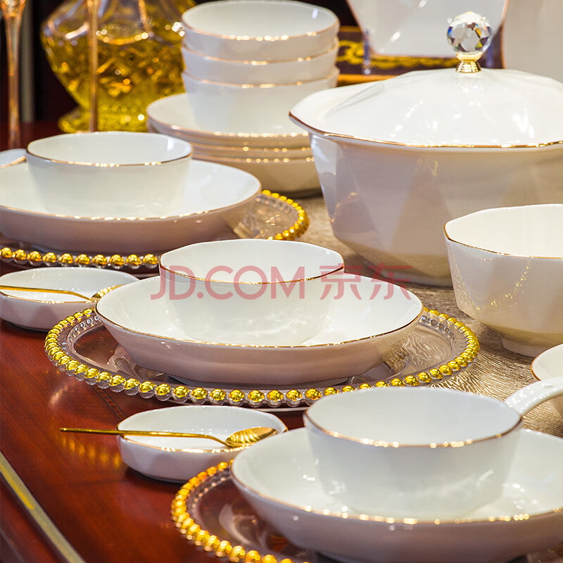 商品相册:冠朴2025新款轻奢碗碟套装家用欧式创意餐具碗盘金边陶瓷盘子碗筷组合第1张/共6