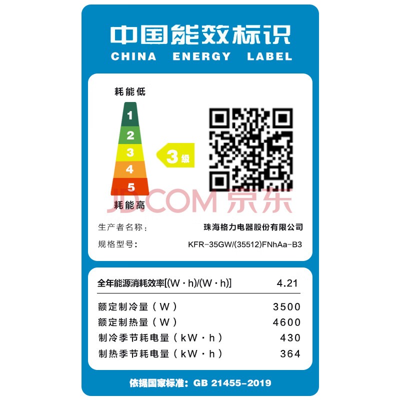 商品相册:格力 新能效 大1.5匹 凉之沁 新三级能效 变频冷暖空调 挂机 KFR-35GW/(35512)FNhAa-B3 (线下同款)第