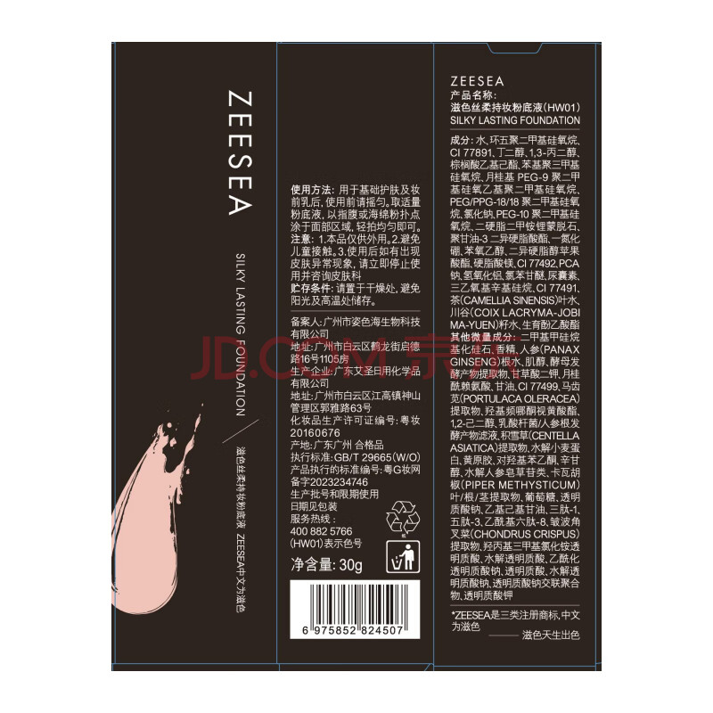 商品相册:ZEESEA滋色粉底液遮瑕控油保湿象牙色30g 姿色持久防水防汗 生日礼物第
