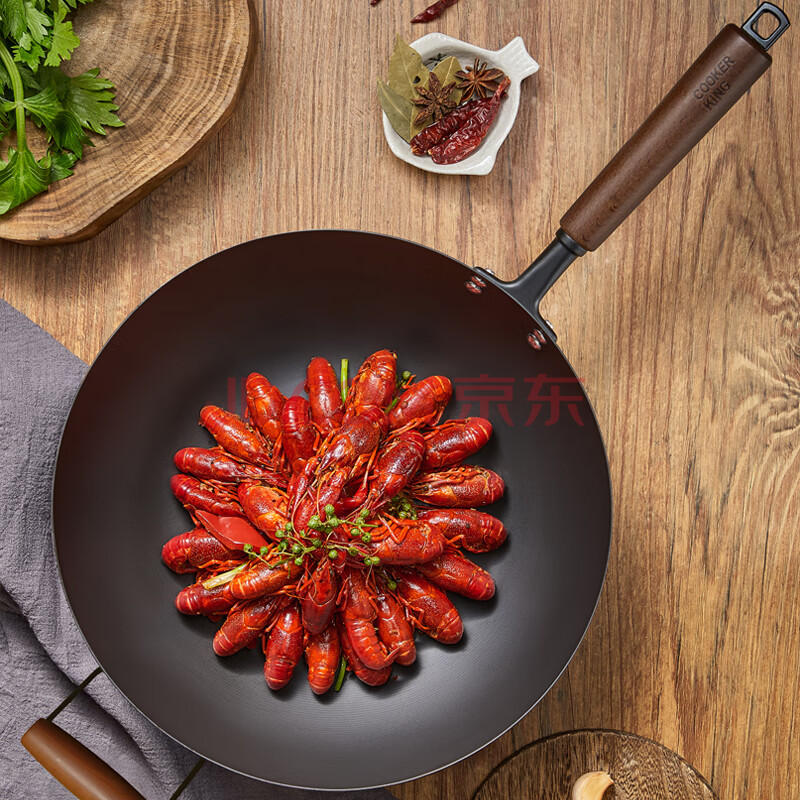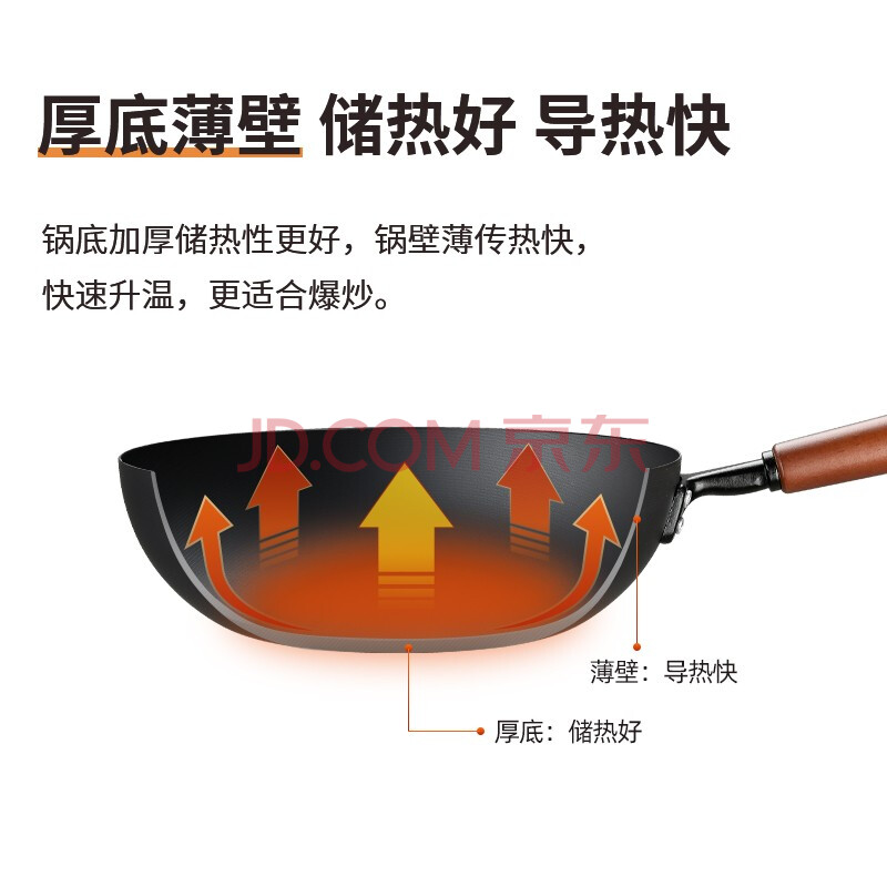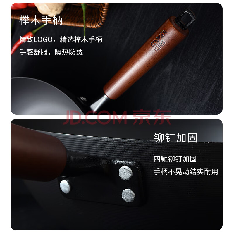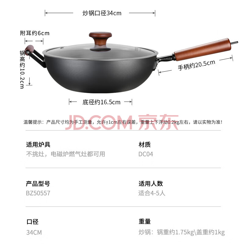 商品相册:炊大皇炒锅铁锅健康无涂层平底煎炒菜锅34cm带附耳磁炉通用极铁BZ50557第