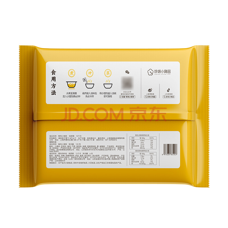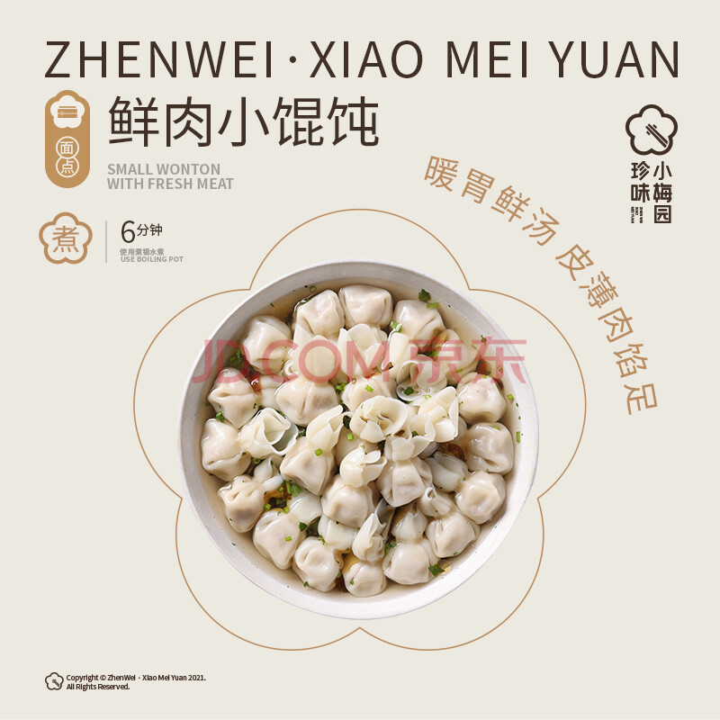 商品相册:珍味小梅园鲜肉小馄饨630g(126g*5袋 共60只含料包)早餐夜宵速食冷冻馄饨第