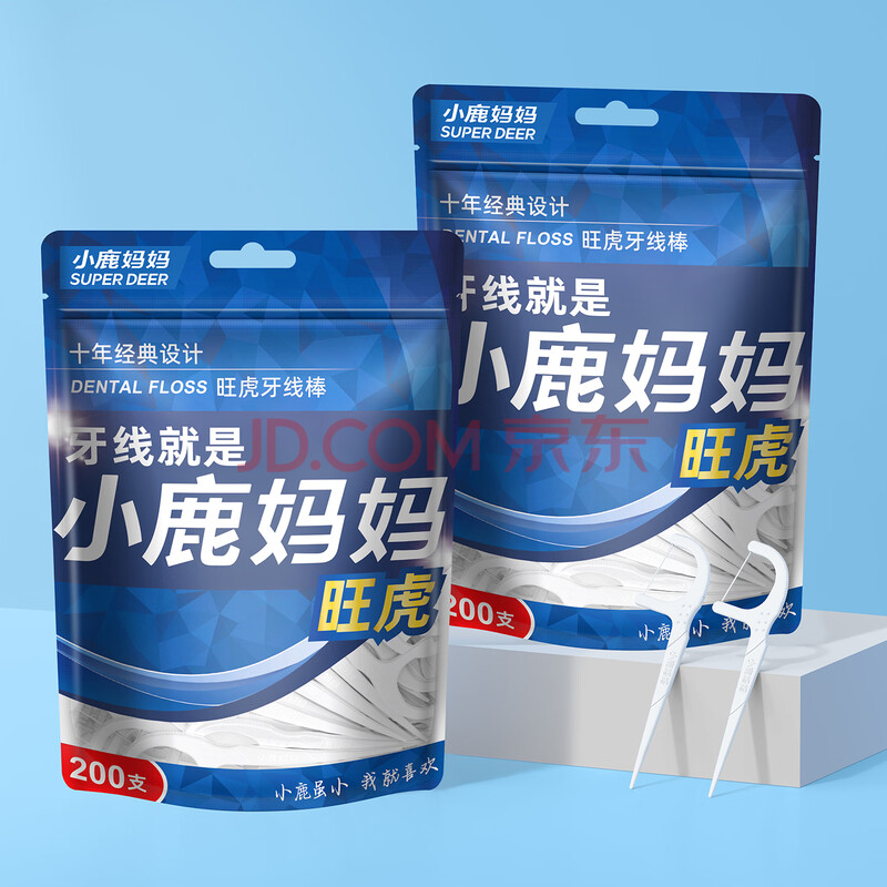 商品相册:小鹿妈妈经典超细牙线棒大袋装共200支成人儿童牙签牙线棒第