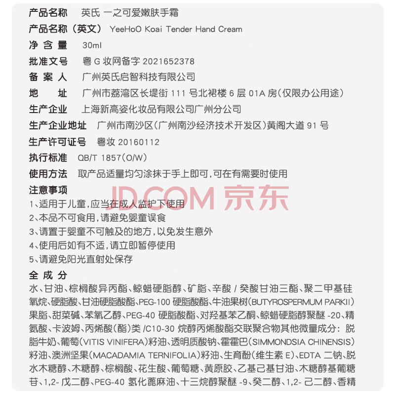 商品相册:英氏儿童嫩肤护手霜 柔嫩恒润手霜 护肤霜优护预防干裂纤柔润手霜30ml第