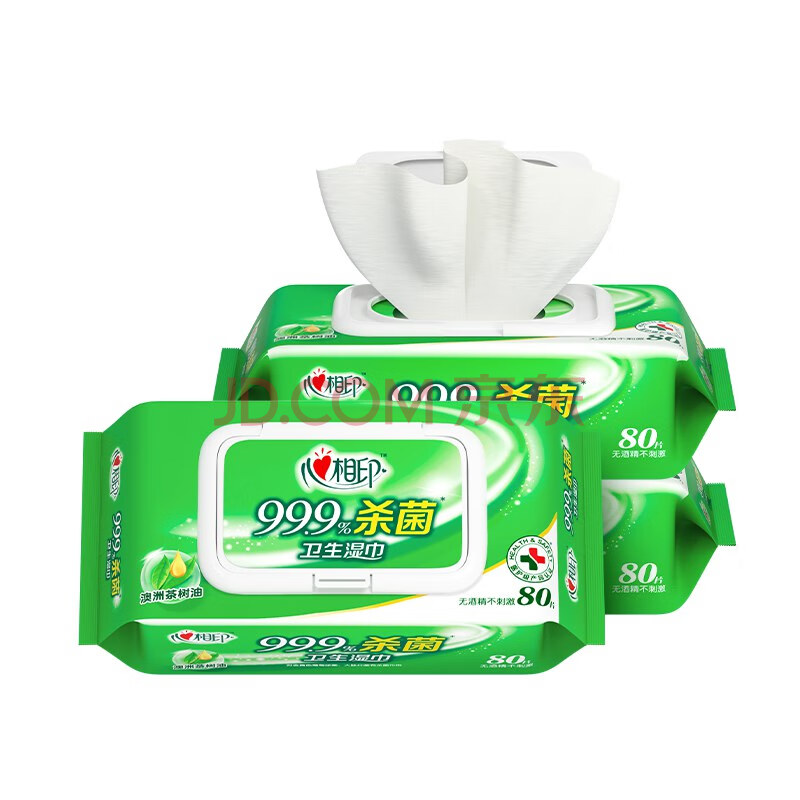 商品相册:心相印杀菌湿巾 80抽*3包 带盖抽取湿纸巾 新老包装随机发第