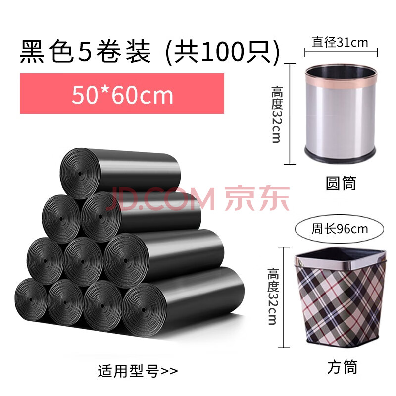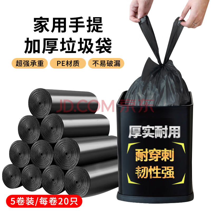 商品相册:京惠思创背心垃圾袋黑色50*60cm*100只0.8丝手提式厨房家用塑料袋第