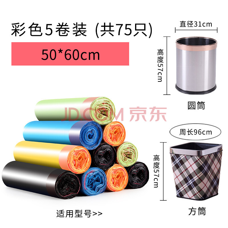 商品相册:京惠思创抽绳垃圾袋彩色50*60cm*75只1丝大号手提式自动收口家用第