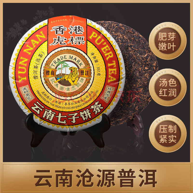 商品相册:虎标中国香港品牌茶叶普洱熟茶 云南沧源港销普洱熟茶357g/饼第1张/共6