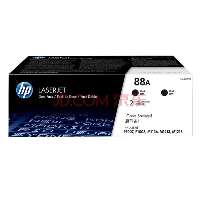 商品相册:惠普(HP)LaserJet CC388AD硒鼓 88A双支(适用 1108;1106;M1213;1216;1136;M202;M226;M126;M128系列三年保第
