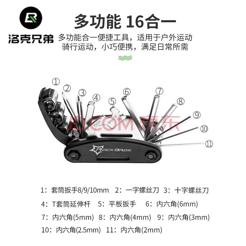 商品相册:洛克兄弟(ROCKBROS)自行车维修工具包补胎 扳手山地车组合工具 便携款(可装车上)第