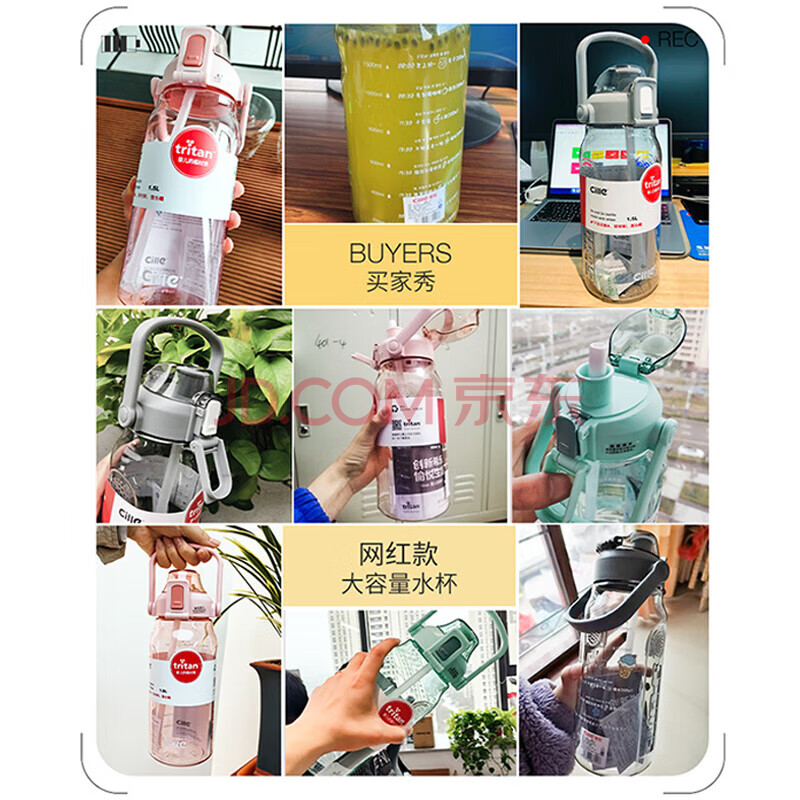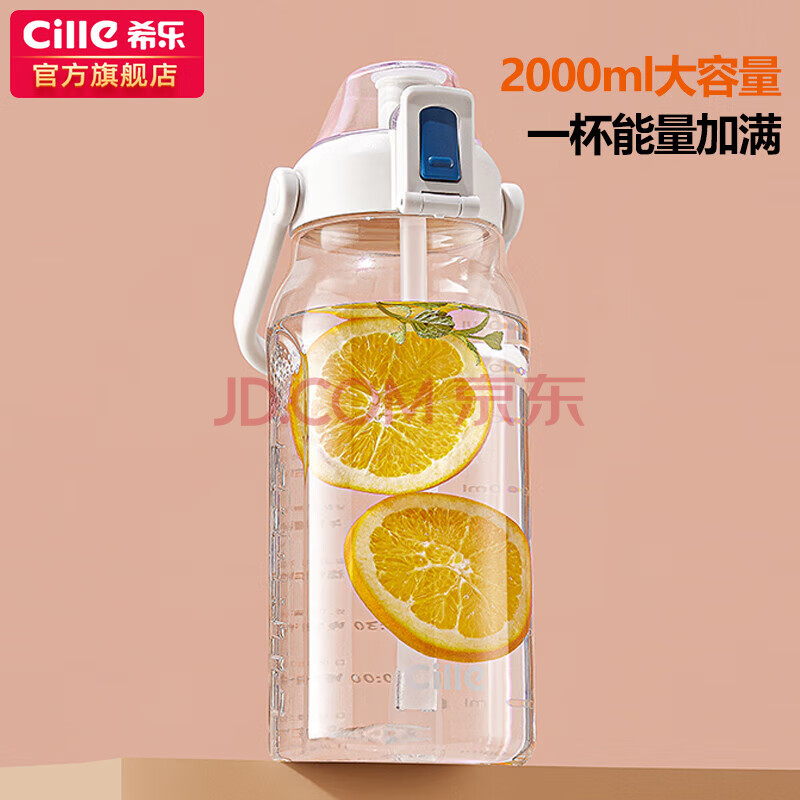 商品相册:希乐运动水杯男女tritan材质健身水杯大容量网红学生塑料杯2.0L莲花红第