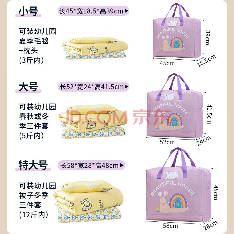 商品相册:百草园幼儿园被子收纳袋加厚牛津布学生装棉褥的袋儿童手提行李打包衣服第