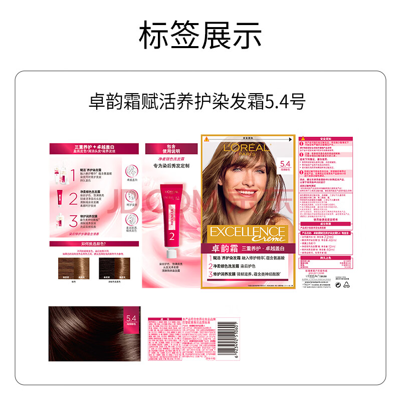 商品相册:欧莱雅卓韵霜染发剂#5.4(浅铜棕)盖白头自己在家染发膏第