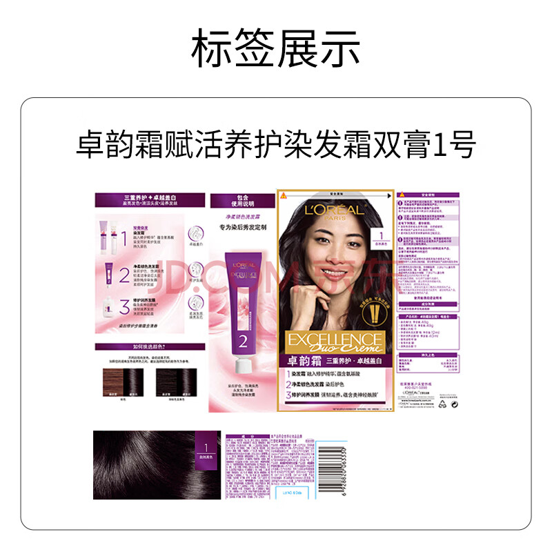商品相册:欧莱雅卓韵霜特润双膏染发#1自然黑色 染发膏染发剂可分次补染遮白盖白第