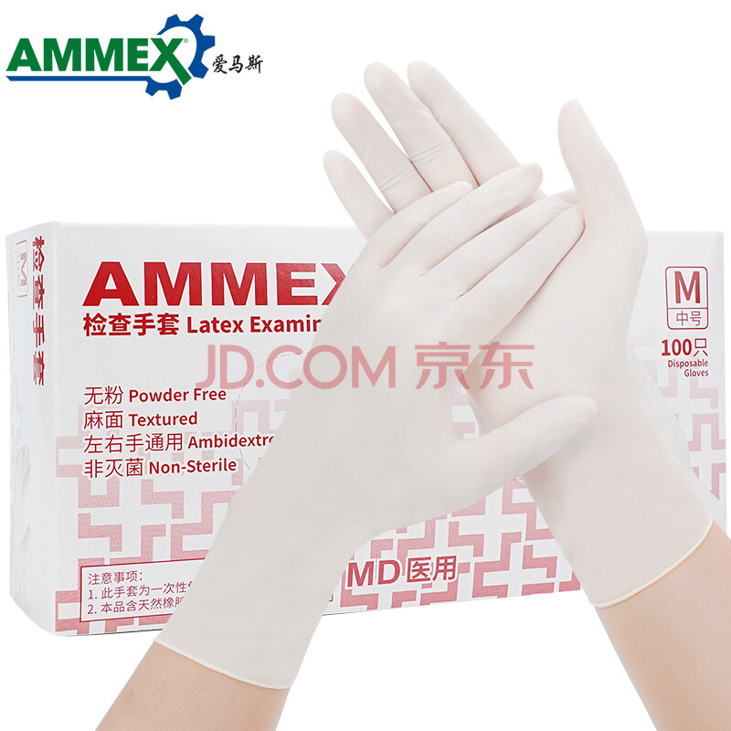 商品相册:爱马斯(AMMEX)一次性手套乳胶100只中号橡胶牙科诊所家务清洁美容洗碗检查手套第