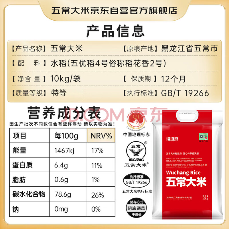 商品相册:五常大米官方溯源 裕道府 特等五常大米20斤原粮稻花香2号 真空装当季新米第