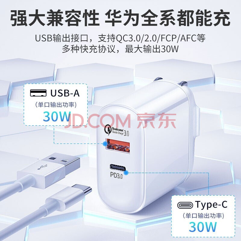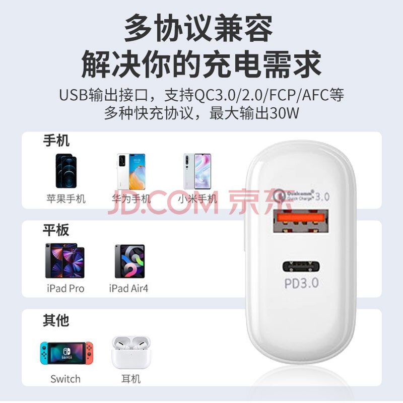 商品相册:KOOLIFE适用苹果充电器PD30W多口快充数据线插头20W/18W通用iPhone14/13/12ProMax华为iPad手机USB/Type-C第