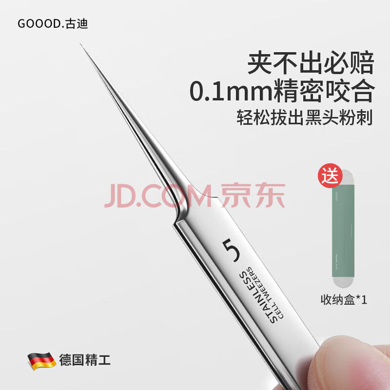 商品相册:古迪超细去黑头细胞夹镊子粉刺夹子闭口挤挑痘痘针美容院工具带收纳盒第