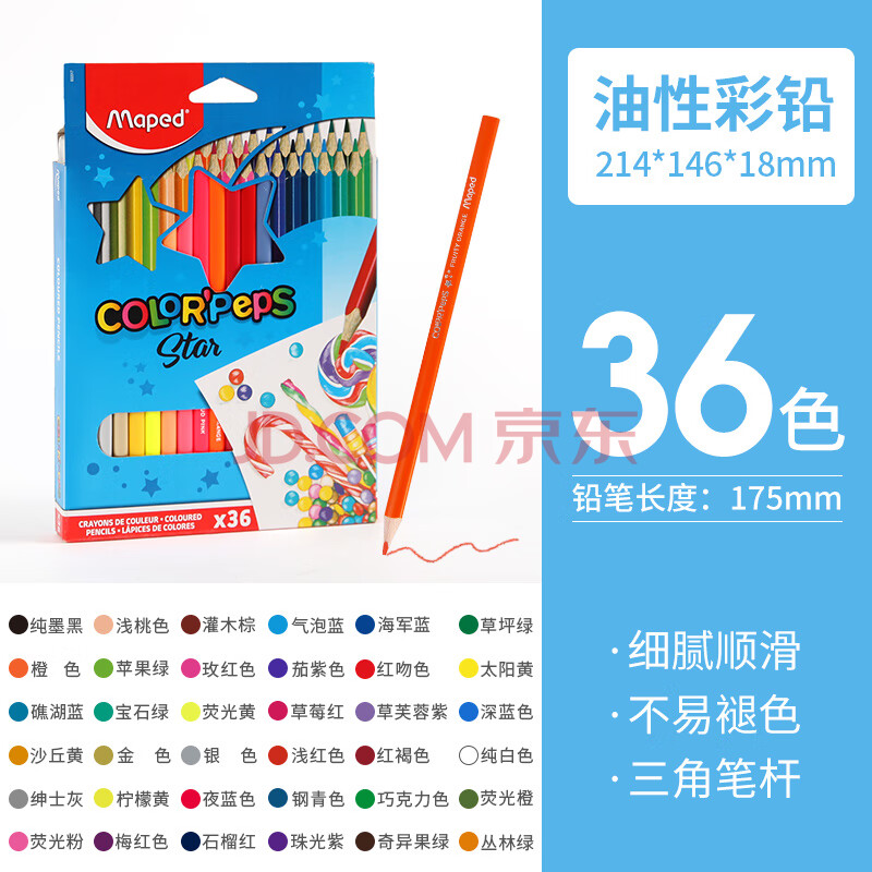 商品相册:马培德(Maped)油性彩色铅笔 幼儿学生环保绘彩蜡笔 初学美术彩绘涂鸦画笔 节日儿童礼物 832017CH【36色/盒】第
