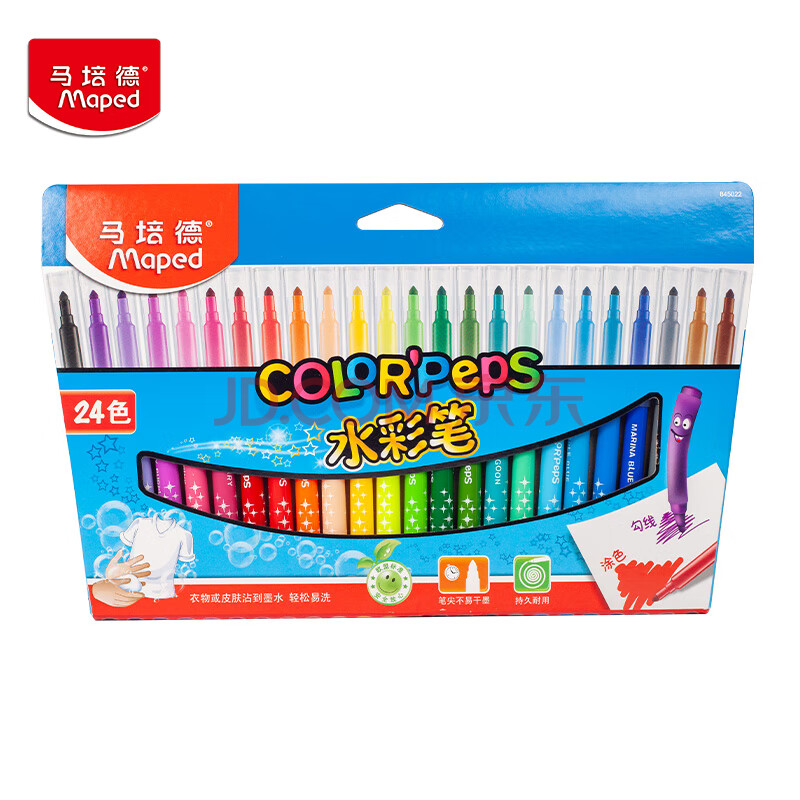 商品相册:马培德(Maped)可水洗儿童水彩笔 幼儿学生绘画彩色笔 初学美术彩绘涂鸦画笔 节日送礼 845022CH【24色/纸盒装】第