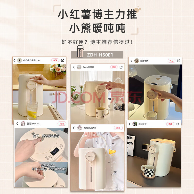 商品相册:小熊(Bear)暖吨吨 电热水瓶 烧水壶 智能恒温电热水壶 5升大容量防烫除氯多段保温304不锈钢 ZDH-H50E1第
