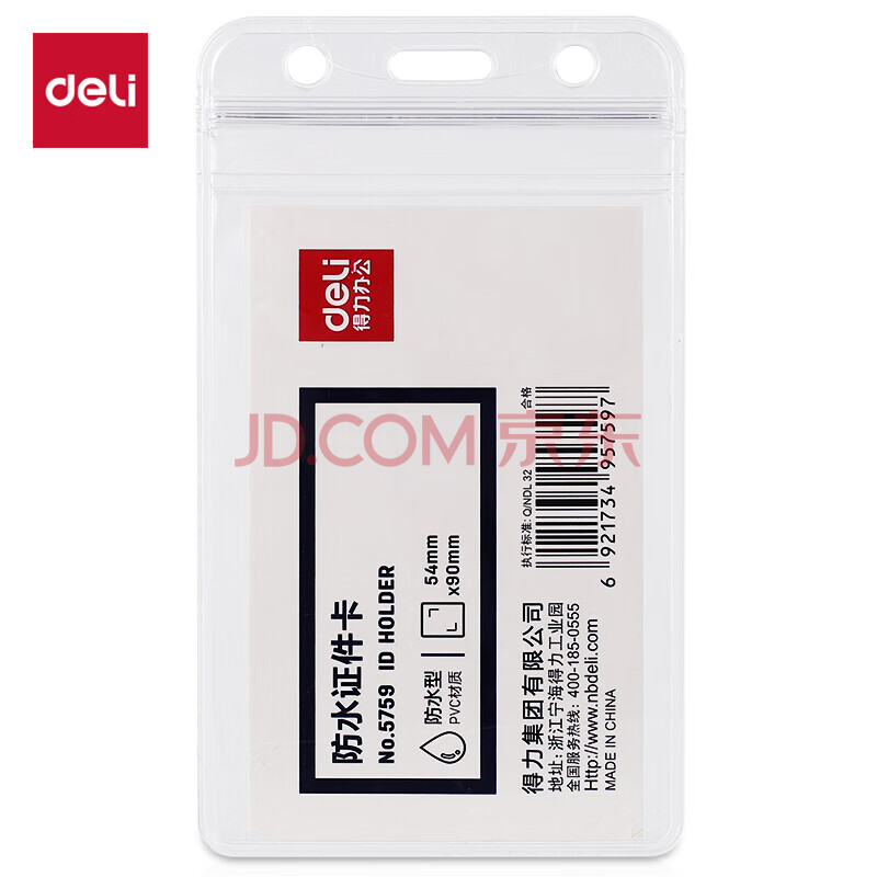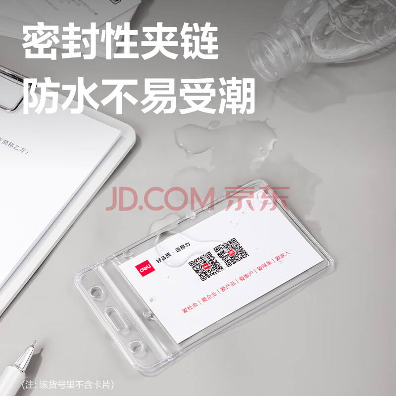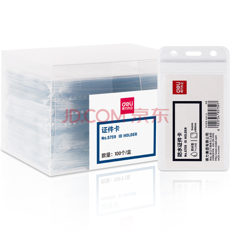 商品相册:得力(deli)100个竖式防水工作牌证件卡套工作证员工牌公交卡套饭卡门禁地铁卡套身份证 学生办公胸牌透明5759第
