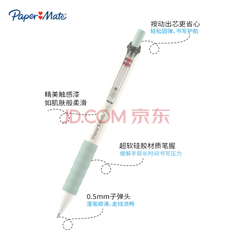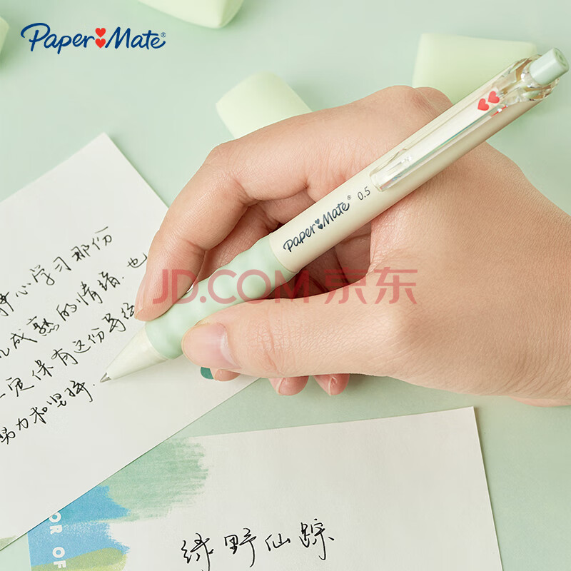 商品相册:【开学必备】缤乐美(Paper Mate)中性笔0.5mm速干高颜值按动式学生棉花糖绿色笔身G120黑色单支装第