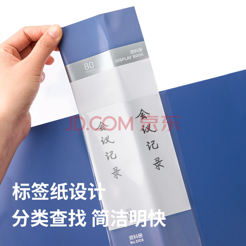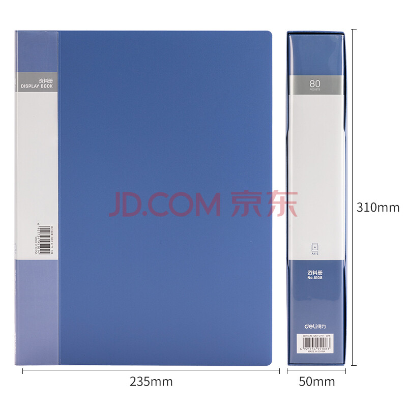 商品相册:得力(deli)A4/80页大容量中小学生资料册文件活页收纳册插袋档案文件夹票证保护收纳 办公用品蓝色5108第