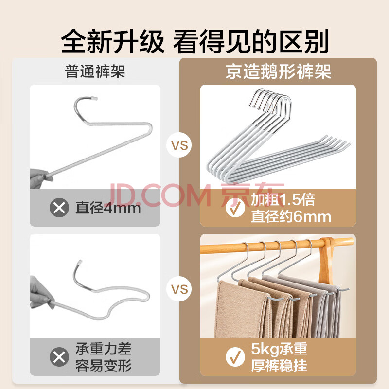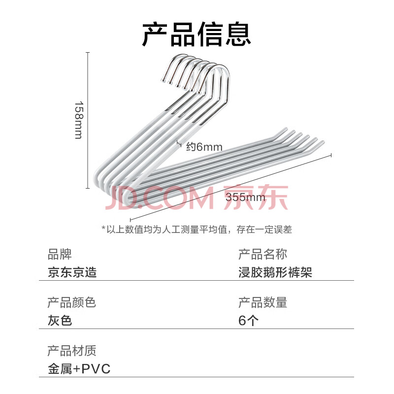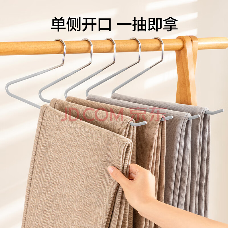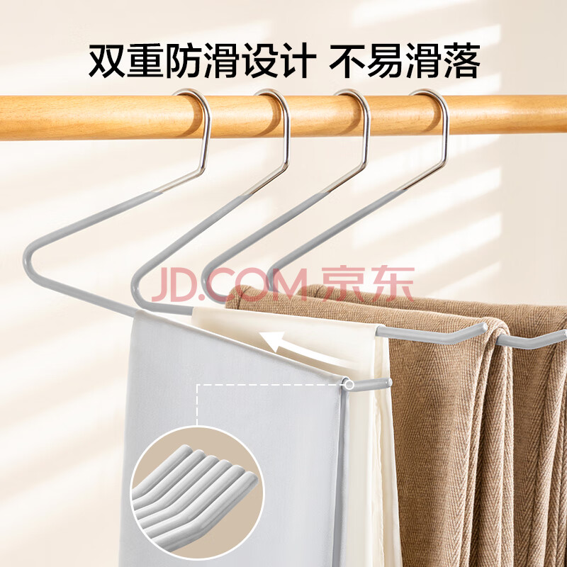 商品相册:京东京造浸胶鹅型裤架子防滑无痕裤子衣架挂裤子收纳衣架 6个灰第