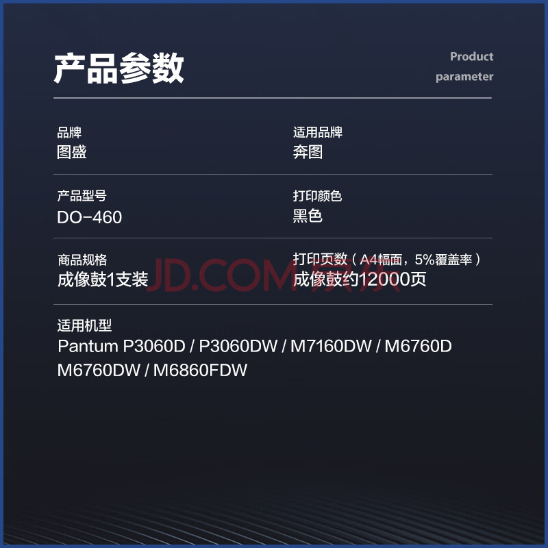 商品相册:图盛DO460成像鼓适用奔图M7160DW粉盒PANTUM P3022D/DWS P3060D/DW M6760D/DW M6860FDW打印机硒鼓鼓架TO-460H第