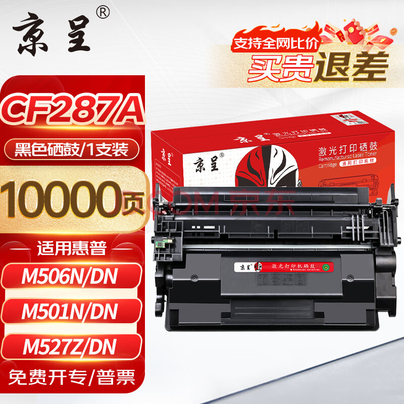 商品相册:京呈适用惠普HP87a硒鼓CF287a Pro M501dn M501n打印机墨盒mfp M506x M527dn M527z易加粉M506dn碳粉盒第