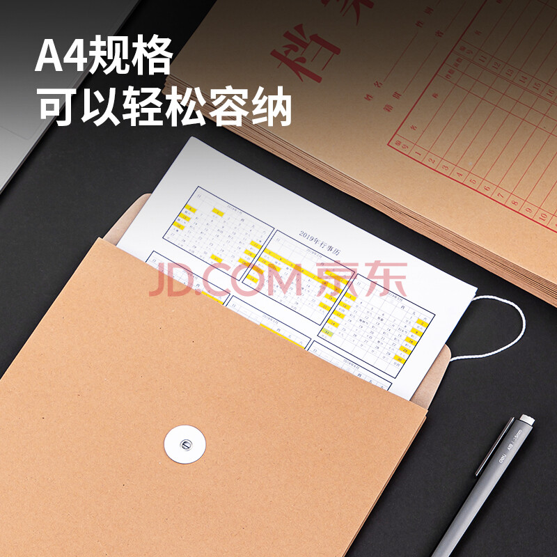 商品相册:得力(deli)10只A4混浆175g牛皮纸档案袋 侧宽4cm文件资料袋文件保护票据收纳 人力合同标书资料P05953第