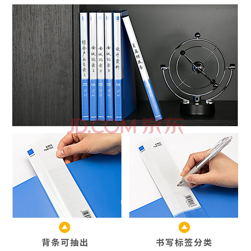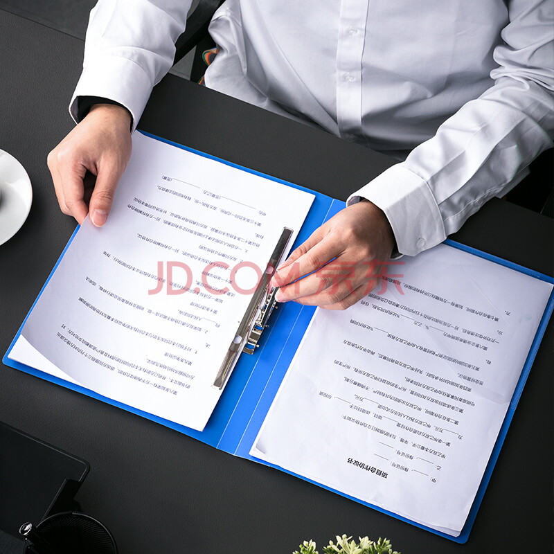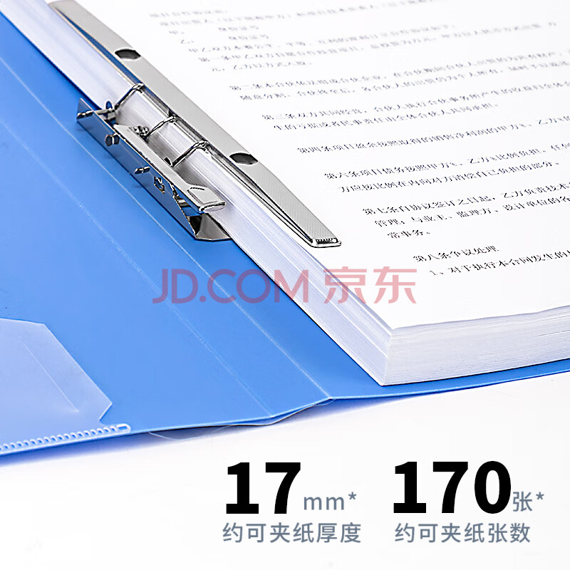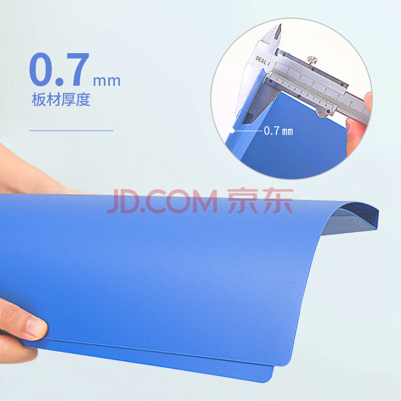 商品相册:得力(deli)A4金属长押夹+插页袋硬文件夹大容量试卷资料夹诗朗诵签约夹板办公用品 5308蓝色第