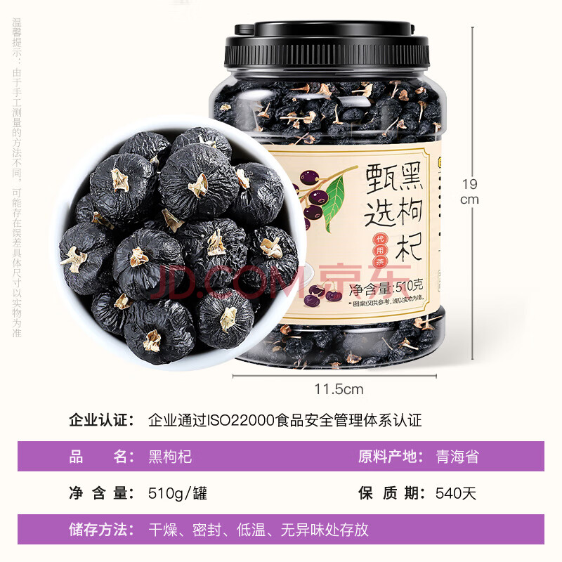 商品相册:贡苑【青海原产】黑枸杞510g 头茬免洗枸杞子搭桑葚桂圆第