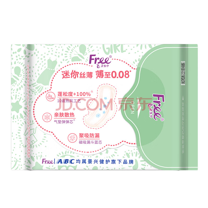 商品相册:FREE京东自营热门护垫卫生巾 日用便携超薄棉柔190mm*10片第