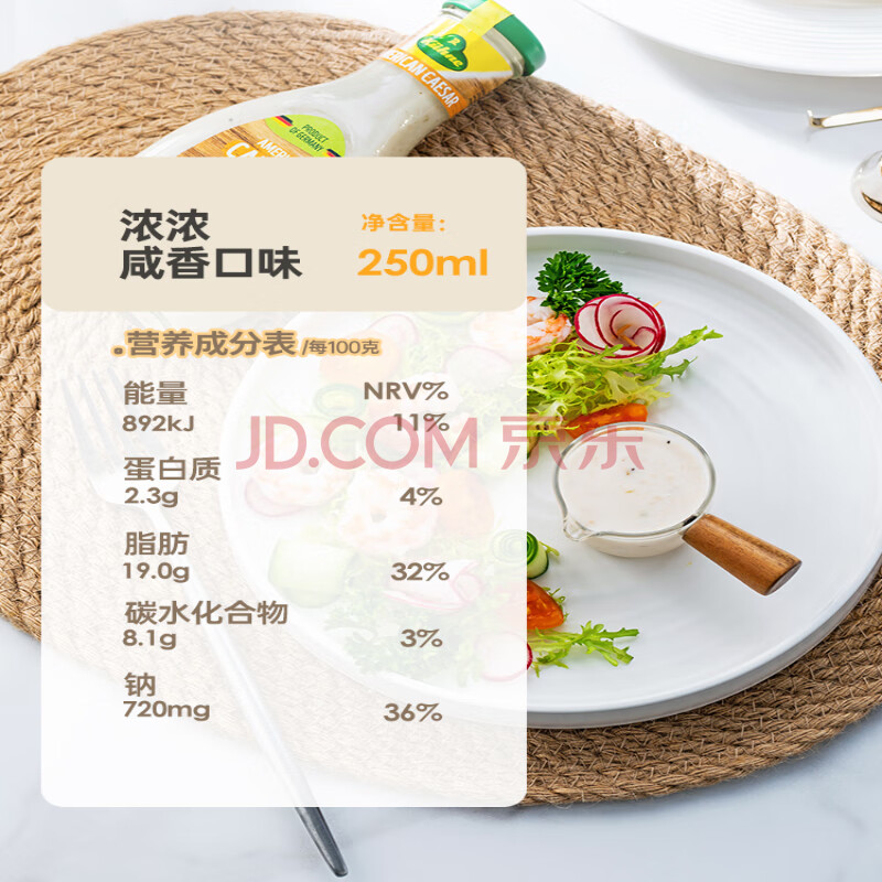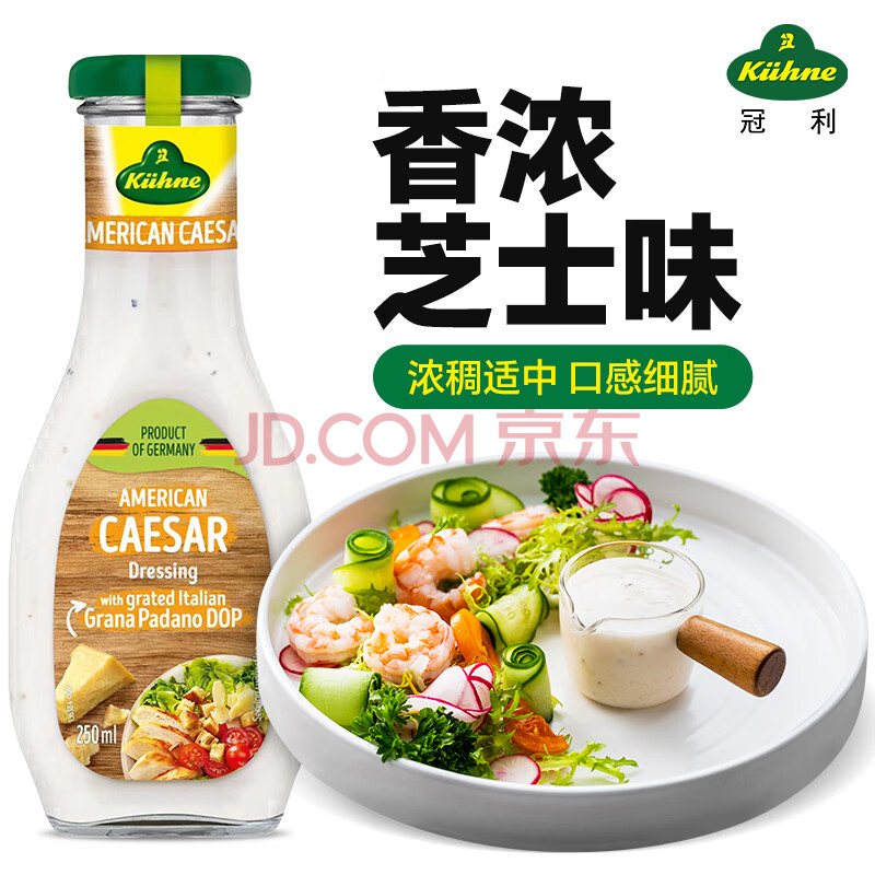 商品相册:冠利(KUHNE)美式凯撒沙拉酱250ml色拉酱轻食健身餐水果蔬菜沙拉德国进口第