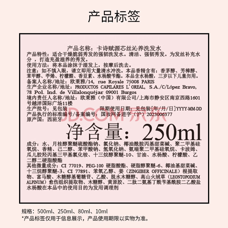 商品相册:卡诗元气姜奶瓶洗发水250ml生姜长效控油滋养秀发强韧修护第