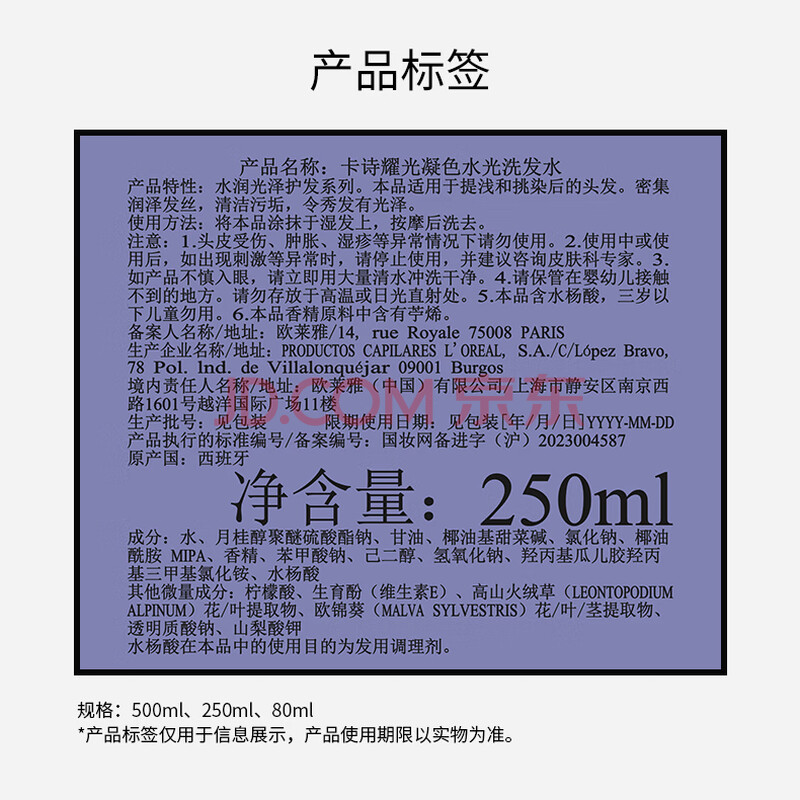 商品相册:卡诗玻尿酸水光洗发水250ml耀光凝色柔顺漂染修护深层补水第