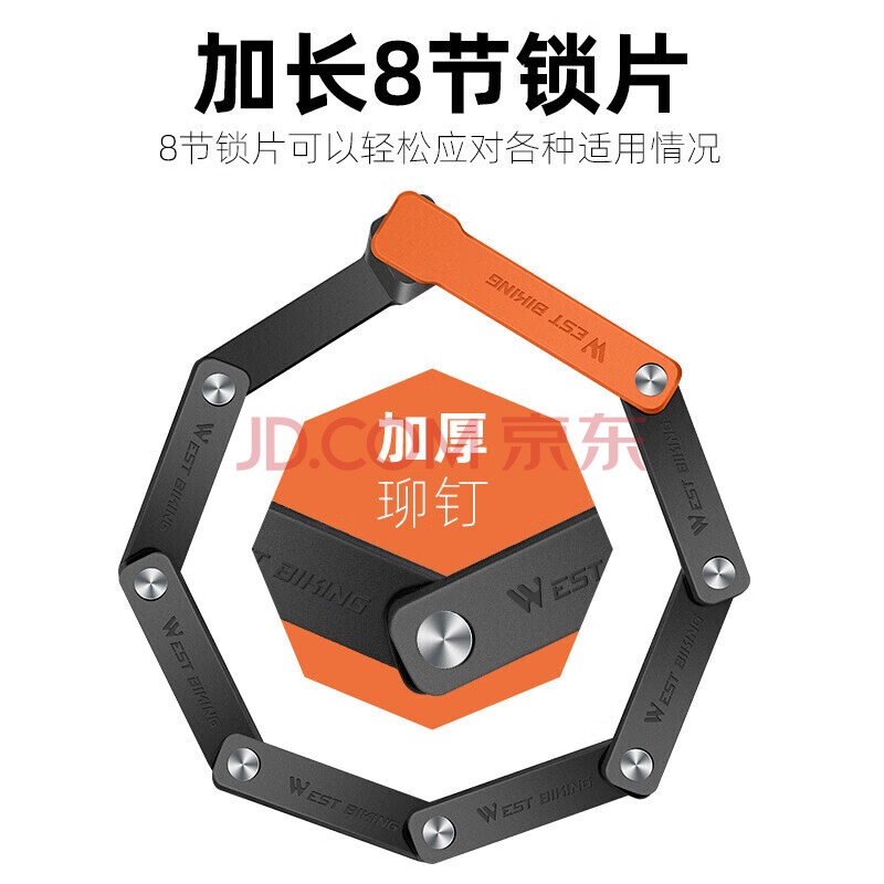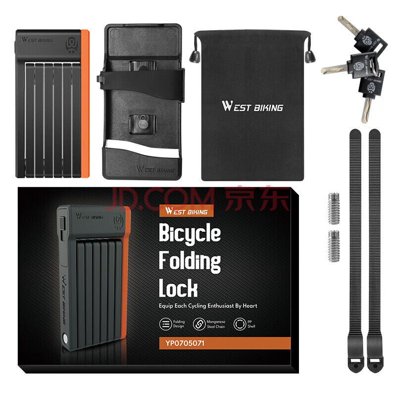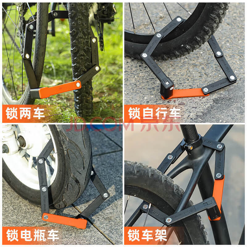商品相册:西骑者(WestBiking)自行车锁电动车电瓶车折叠锁便携式单车防盗锁配件 黄色第