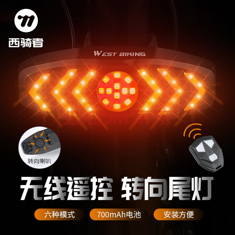 商品相册:西骑者(WestBiking)智能遥控自行车灯无线尾灯骑行转向灯LED警示灯配件遥控+尾灯第
