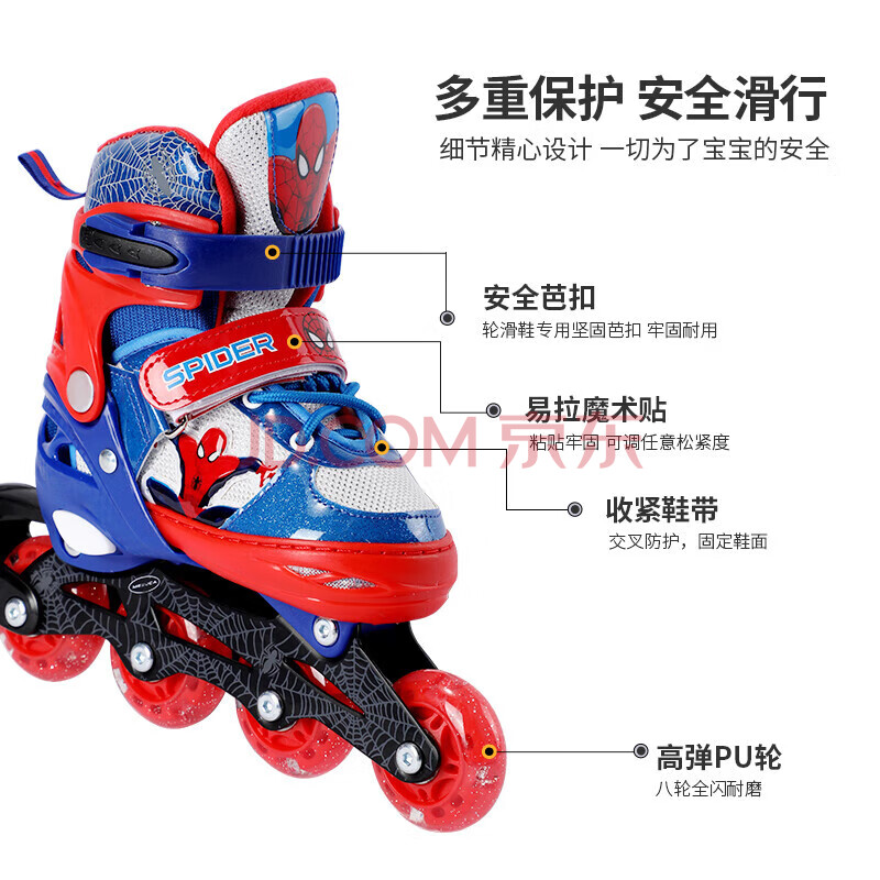 商品相册:迪士尼轮滑鞋儿童溜冰鞋男女童滑冰旱冰鞋速滑鞋初学蜘蛛侠送礼物第