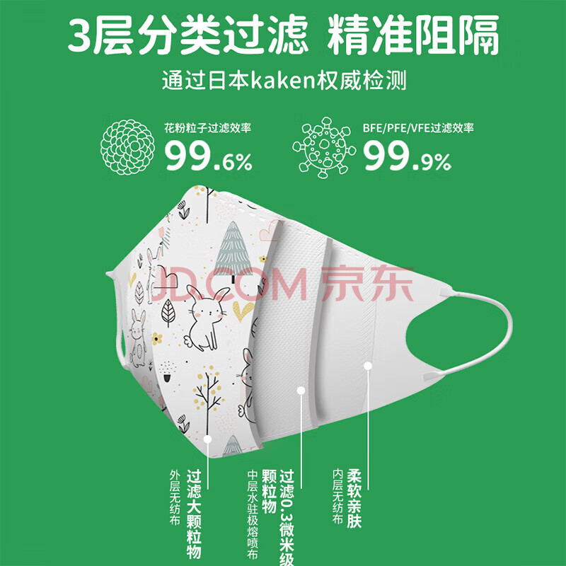 商品相册:绿鼻子(green nose)儿童一次性口罩 三层流感防护防飞沫 恐龙款10片【4-8岁适用】第