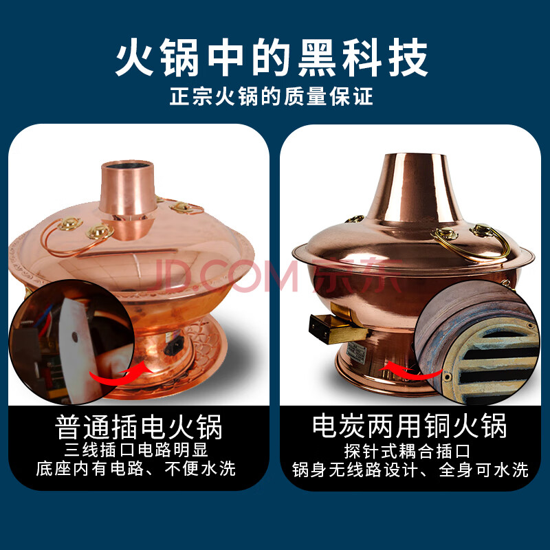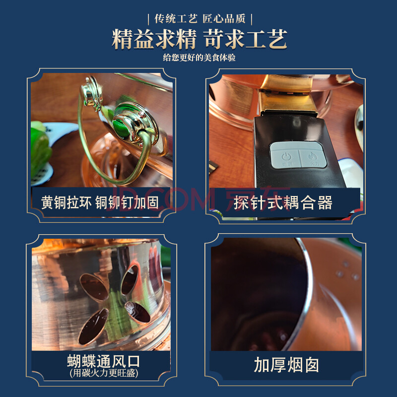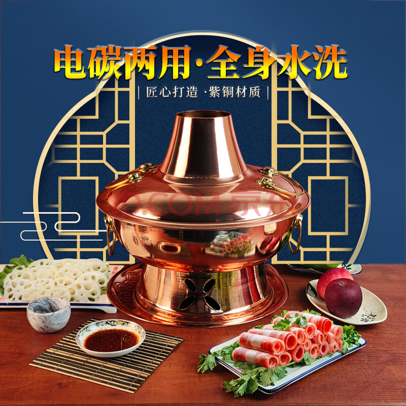 商品相册:郭一元铜火锅加厚紫铜电炭两用插电木碳铜火锅老北京涮羊肉铜锅-32单味第