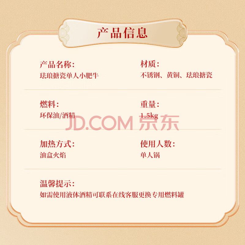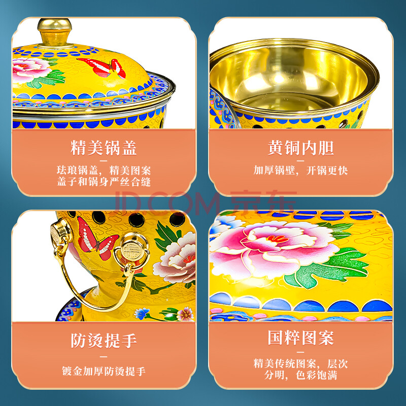 商品相册:郭一元新景泰蓝珐琅铜锅老北京小火锅单人自助火锅酒精小肥牛锅-黄花第